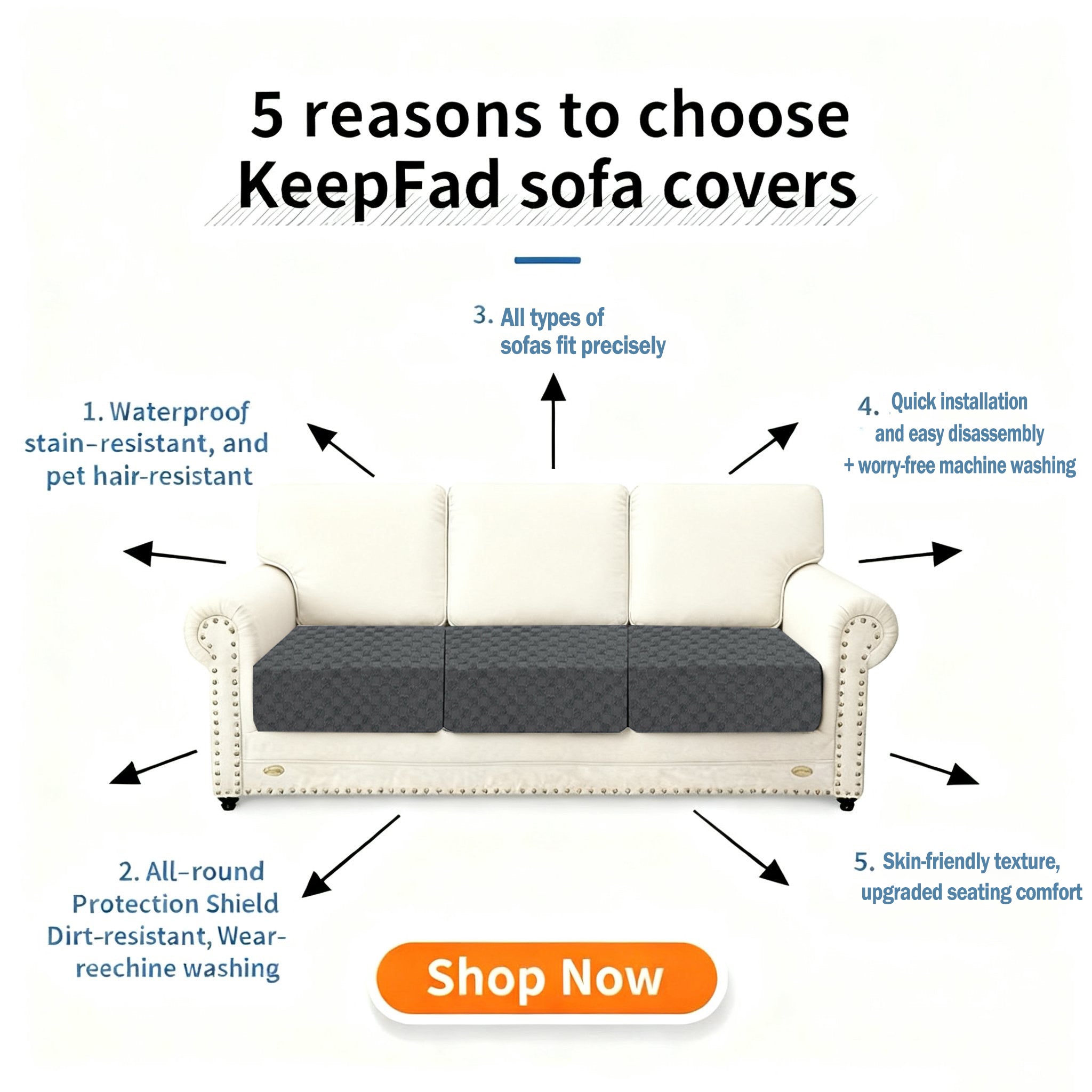Stop letting spills and pets dictate your home’s look. Trust KeepFad—the brand that combines innovation with everyday practicality. Shop now for a 30-day satisfaction guarantee. Upgrade to a cleaner, safer sofa today with KeepFad!